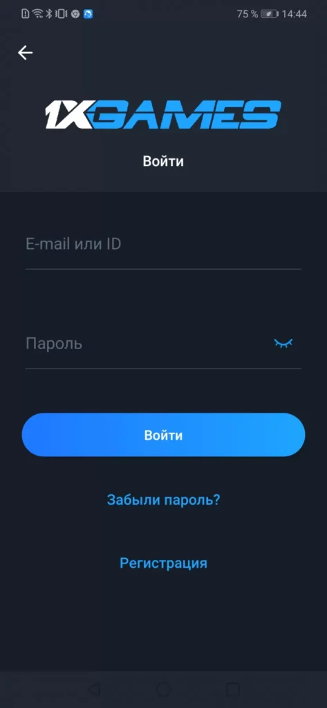 Чтобы авторизоваться, нужно перейти через приложение на сайт 1xGames. На главной странице сайта следует кликнуть по клавише «Войти» – она расположена справа в верхней информационной линейке. В открывшемся окне для авторизации следует указать свой ID или адрес электронной почты, пароль.