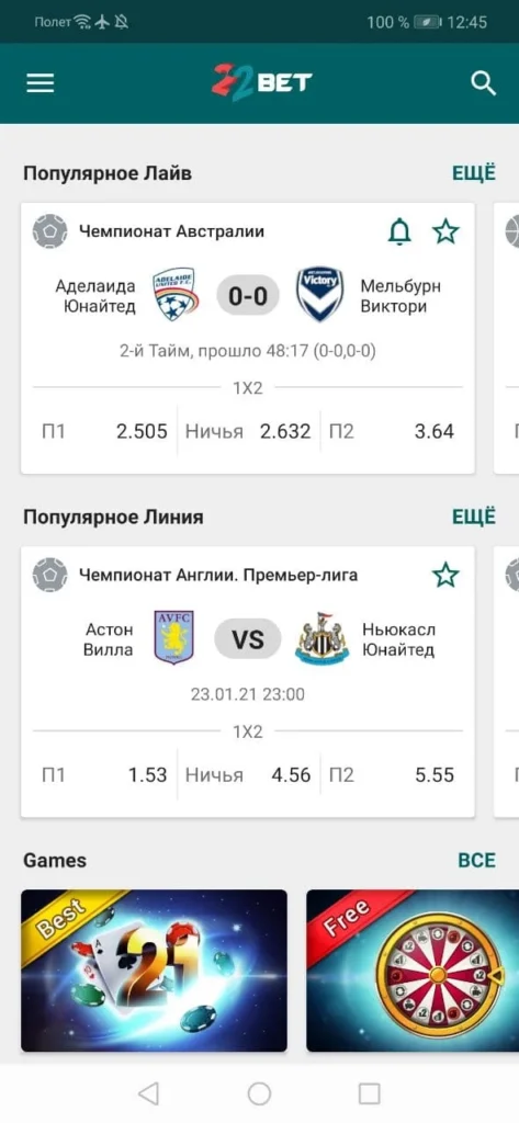 Приложение «22bet андроид» предоставляет пользователям широкий спектр возможностей. Игрокам доступны функции заключения пари и игры на игровых автоматах.