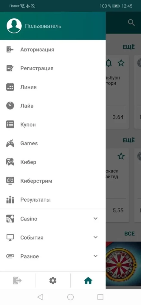 - Зайти через приложение на главную страницу сайта букмекера или в личный кабинет и авторизоваться.