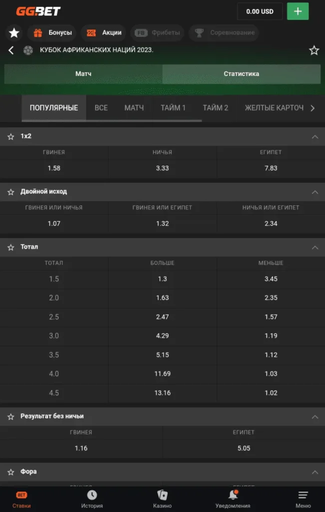Личный кабинет в приложении GG.bet предлагает различные настройки для аккаунта, содержит транзакции и входящие сообщения, позволяет активировать бонусы и проверять промокоды.