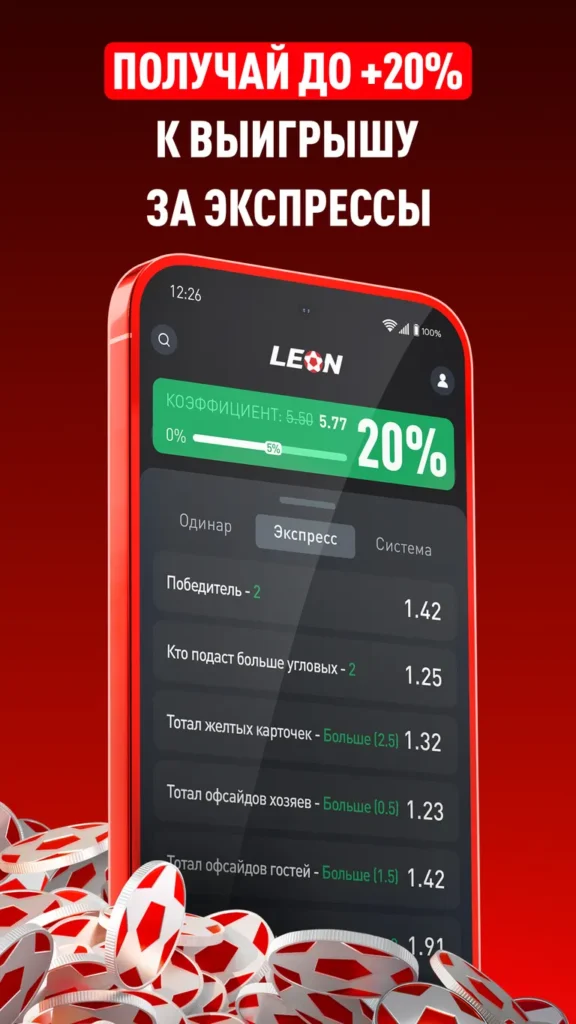 Мобильные приложения букмекерской компании Leon отличаются особенным интерфейсом ставок. После нажатия на коэффициент исхода не нужно выбирать дальнейшее действие – событие сразу добавляется в купон. Если хотите сделать одиночную ставку – добавьте один исход, откройте купон и подтвердите пари.