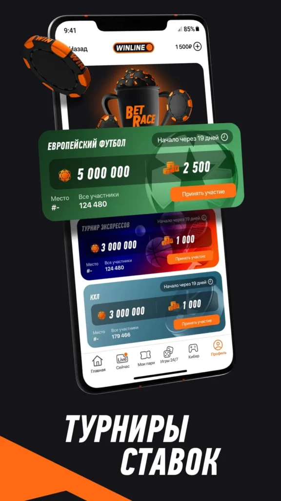 В мобильном приложении Винлайн можно заключать различные пари. Для поиска спортивного поединка есть Линия и Live, все матчи разделены по видам спорта: от футбола и хоккея до тайского бокса и бейсбола.
